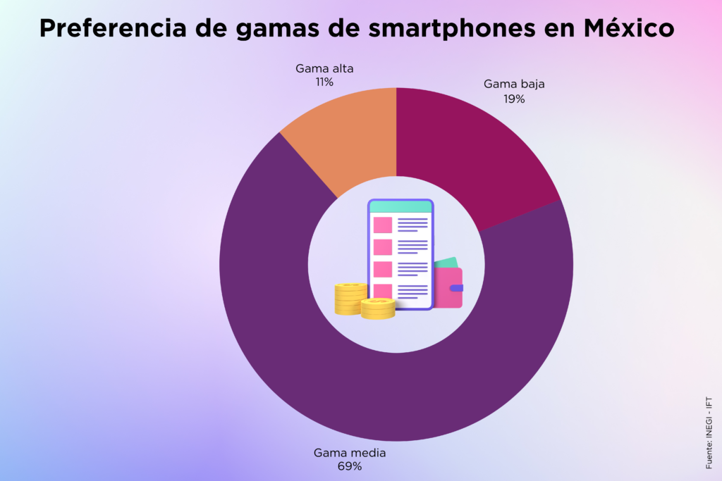 En esa línea, el Instituto Federal de Telecomunicaciones (IFT) ha identificado que el 68.8% de los celulares en uso en el país pertenecen a la gama media, mientras que el 11.4% corresponde a la gama alta. De hecho, los smartphones de gama baja y media han incrementado su participación en el mercado, pasando del 50% al 52% en los últimos años.
