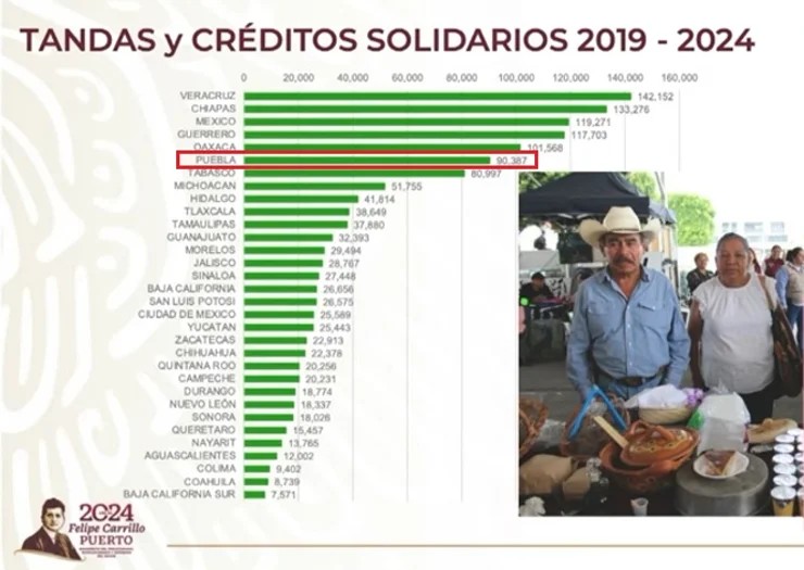 Los estados de Puebla y Tlaxcala se posicionaron en los lugares 6 y 10 del país con más financiamientos otorgados por el Banco del Bienestar a través de tandas y créditos solidarios en el sexenio de Andrés Manuel López Obrador.