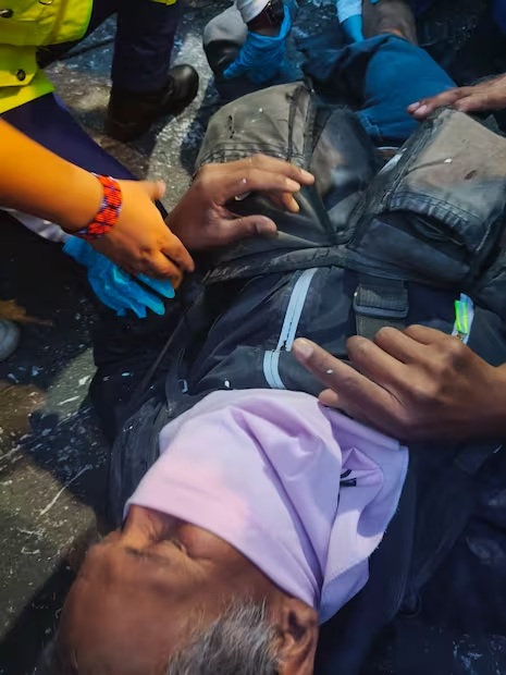 Una foto que circula en redes sociales muestra a David de Olarte tendido en el suelo mientras es atendido por paramédicos del Escuadrón de Rescate y Urgencias Médicas (ERUM). Hasta ahora tampoco que se ha hecho publico su estado de salud.