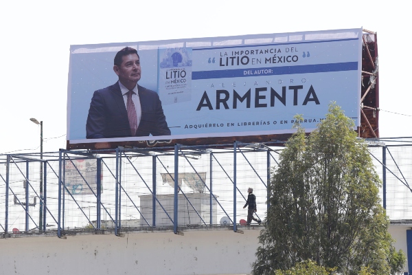El presidente de la Cámara del Senado de la República, Alejandro Armenta Mier se deslindó de los espectaculares que aparecen en la ciudad de Puebla y en algunas carreteras donde se promociona su libro “La Importancia del Litio en México“, de editorial Porrúa.