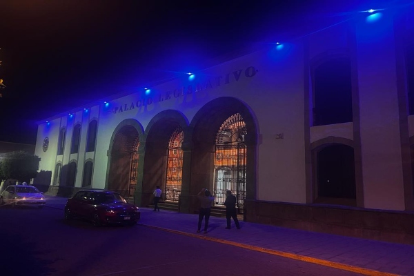 Se llevó a cabo la iluminación del Palacio Legislativo de color azul, mismo que representa esta afección, como una de las acciones simbólicas que buscan promover una sociedad más empática e incluyente para las personas con autismo, la cual inició el 2 de abril y se mantendrá durante esta semana.
