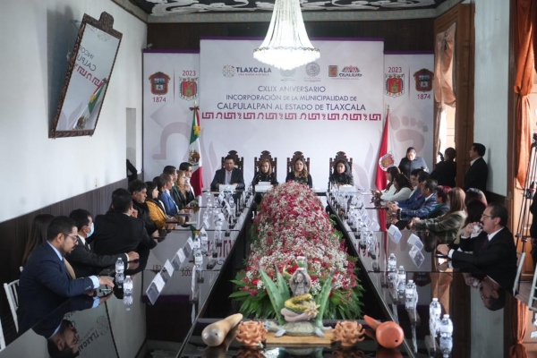 En cumplimiento al decreto 240 aprobado por el Pleno del Poder Legislativo, se celebró sesión extraordinaria pública y solemne, con los tres Poderes del Estado, en conmemoración al CXLIX aniversario de la incorporación del municipio de Calpulalpan al territorio tlaxcalteca, en el Salón de Cabildos del Ayuntamiento.