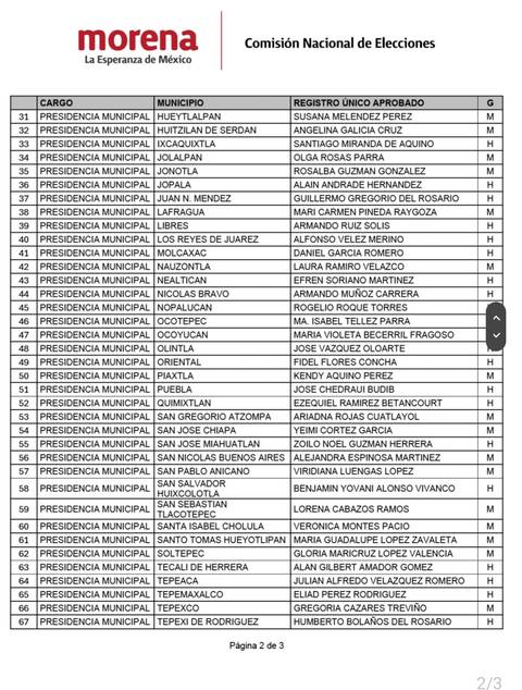 Será en el transcurso de hoy cuando se den a conocer el resto de candidaturas en 132 municipios, donde resaltan San Andrés y San Pedro Cholula, así como Ajalpan, en los últimos casos, los simpatizantes y militantes de Morena han hecho un llamado a las autoridades partidistas para evitar la imposición de perfiles externos a Morena.