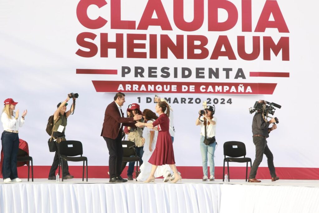 Ciudad de México. En un zócalo repleto de militantes y seguidores de Morena y los partidos que conforman la megacoalición, el coordinador de los Comités de Defensa de la 4T de Puebla Alejandro Armenta acompañó a la candidata presidencial, Claudia Sheinbaum.