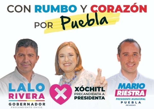 La precandidata presidencial, Xóchitl Gálvez Ruíz, visitará la entidad poblana el 3 de enero de 2024, para acompañar a Eduardo Rivera Pérez y Mario Riestra Piña, a su cierre de precampañas, como precandidatos únicos a la gubernatura y alcaldía de Puebla por la alianza formada por PRI, PAN, PRD y PSI.