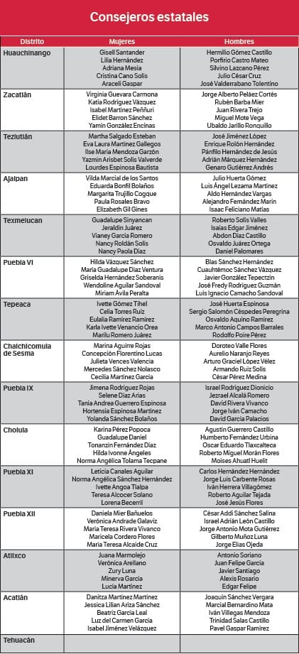 Otros que lograron una posición como consejeros son María Teresa y David, hermanos de la expresidenta municipal de Puebla, Claudia Rivera Vivanco, además de su ex regidor Iván Camacho.