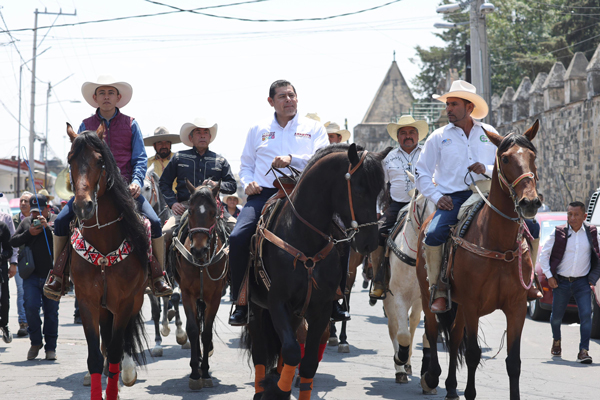 Más de 10 mil personas recibieron en el municipio de Huejotzingo al candidato a la gubernatura del estado de Puebla por la Megacoalición “Sigamos Haciendo Historia” Alejandro Armenta, quien llegó a caballo e hizo compromisos para productores, artesanos y empresarios de la región.