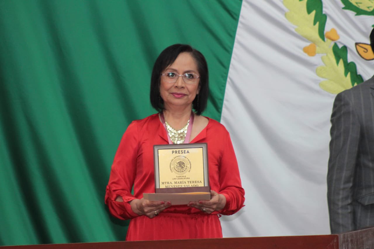 En sesión extraordinaria y solemne celebrada este jueves, las y los diputados de la LXIV Legislatura del Congreso del Estado de Tlaxcala otorgaron a la Maestra María Teresa Meneses Salado la presea “José Arámburu Garreta” 2023 por su distinguida actividad literaria y de investigación histórica y de significación social en el Estado de Tlaxcala.