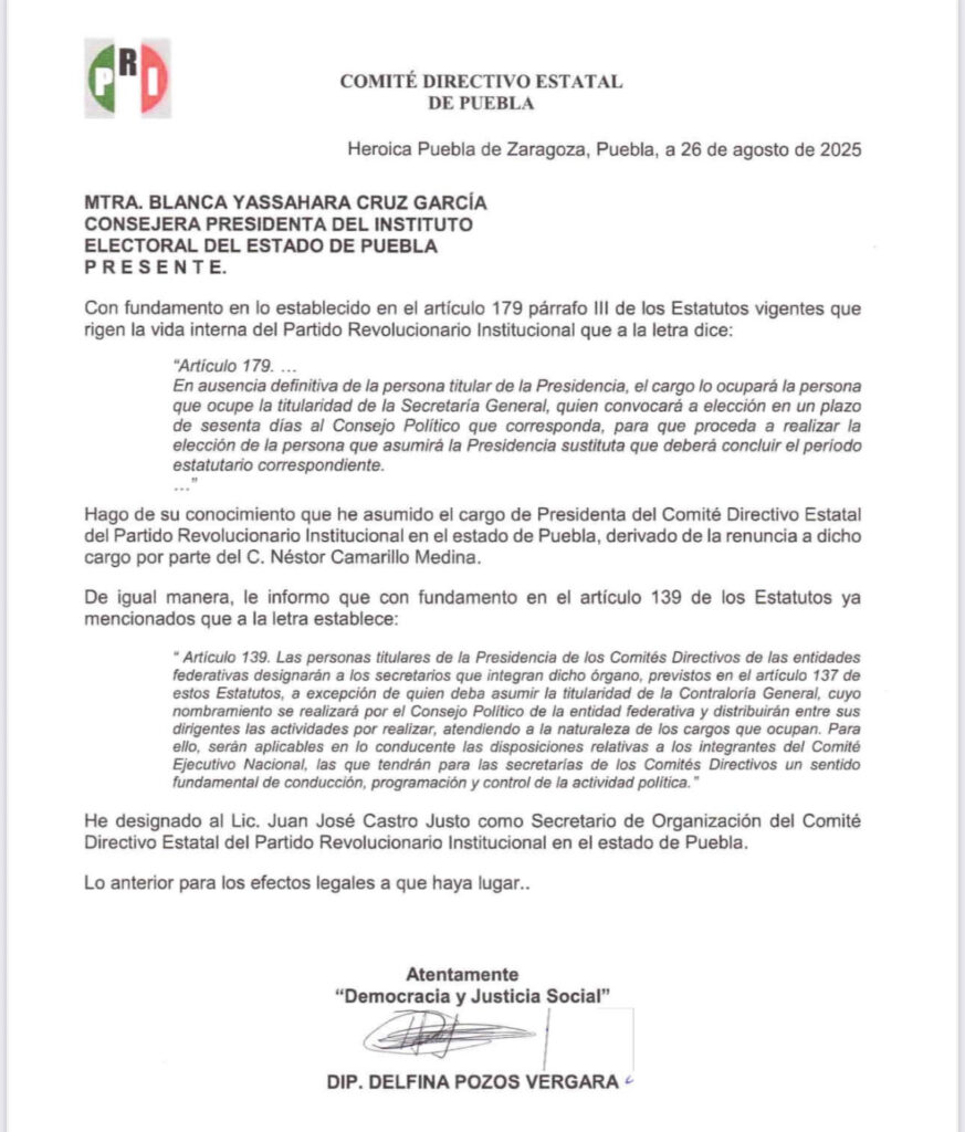 Cabe recordar que la renovación del PRI poblano se tiene programada para el 15 de septiembre, aunque la legisladora local dijo que podría postergarse para garantizar cada etapa del proceso interno.
