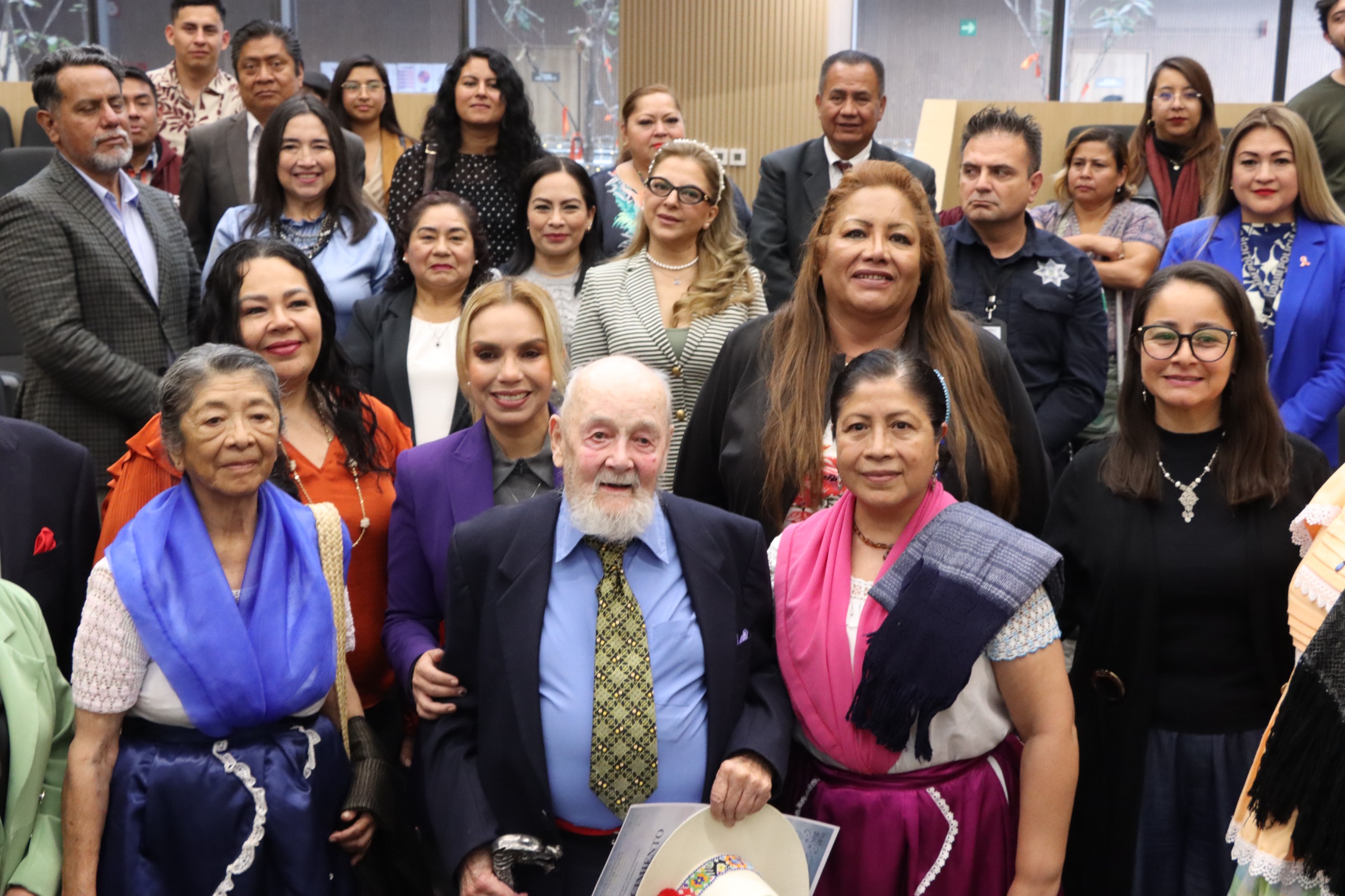 La titular de la Unidad para la Igualdad de Género, Daniela Mier Bañuelos, destacó la dedicación que ha puesto el etnólogo por más de siete décadas en el festival y su papel como creador de una celebración que hoy es Patrimonio Cultural del Estado.