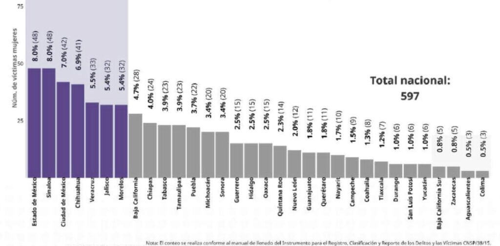 Así se observa en el informe sobre violencia contra las mujeres publicado por el Secretariado Ejecutivo del Sistema Nacional de Seguridad Pública (SESNSP).