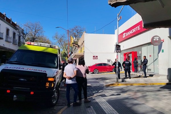 A la zona llegaron elementos de Seguridad Pública Municipal y después de varios minutos llegaron paramédicos a bordo de una ambulancia particular, quienes ingresaron al banco para atender al presunto lesionado.