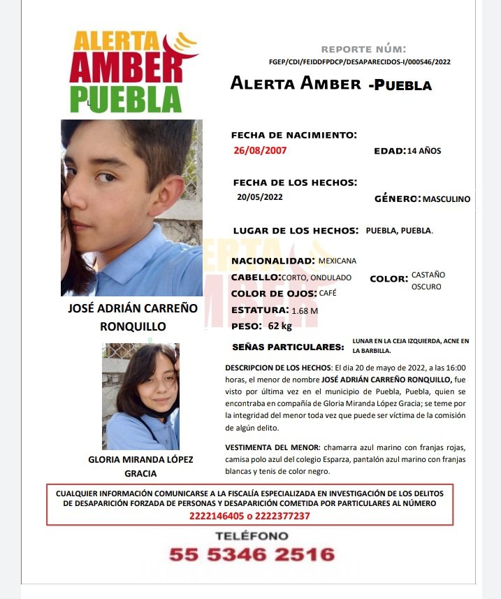 A las 9 de la noche los familiares de Adrián le notificaron que el chico tampoco llegó a casa, por lo que decidió acudir a la Fiscalía General del Estado (FGE) para solicitar que se activara la Alerta Amber.