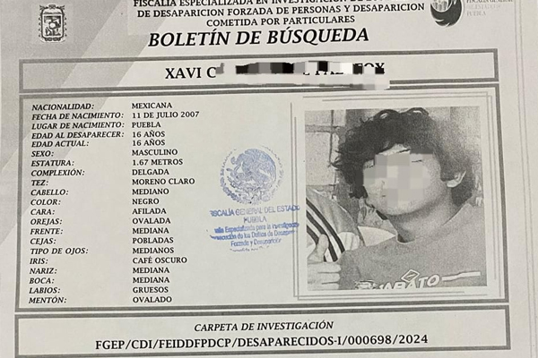 Xavi N. fue reportado como desaparecido por sus familiares desde el domingo, cuando se inició su búsqueda.