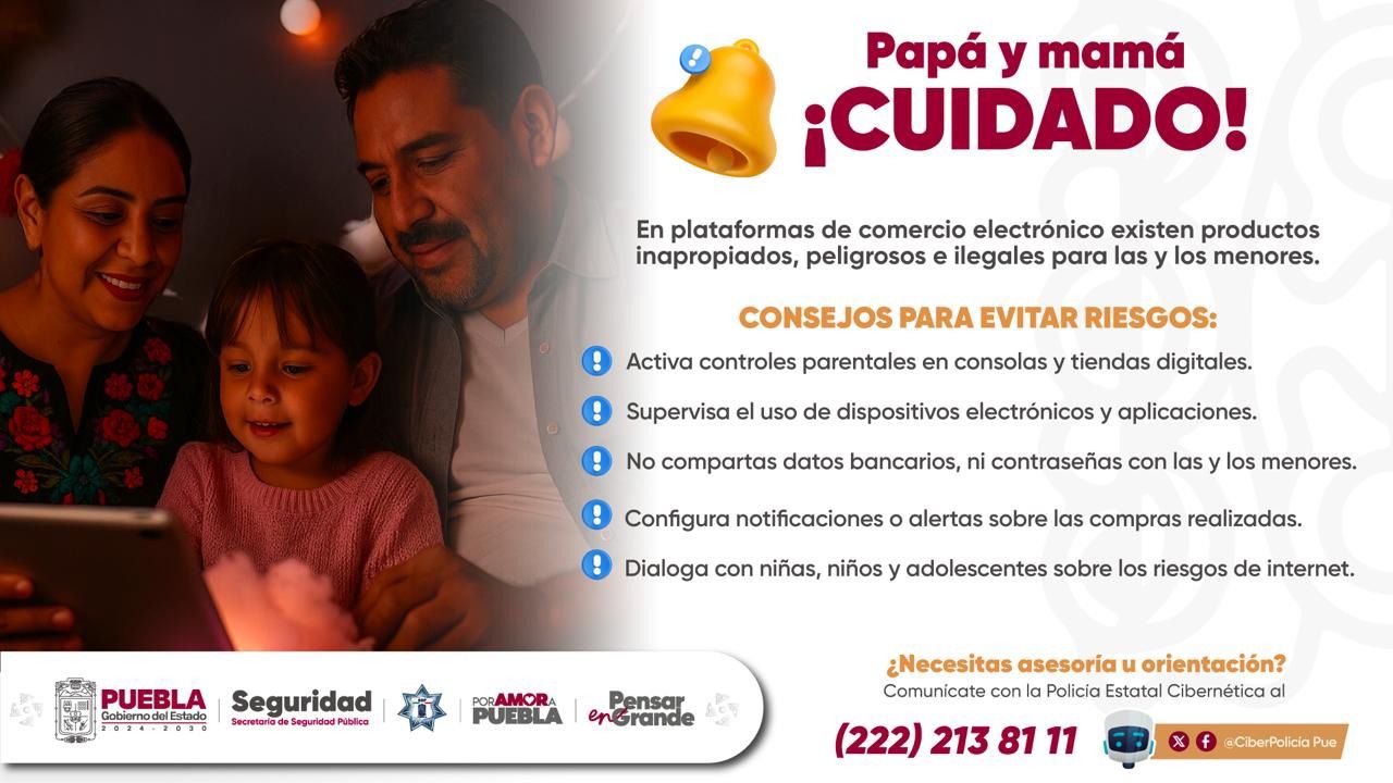 El Gobierno del Estado de Puebla, a través de la Secretaría de Seguridad Pública (SSP), alertó a madres y padres de familia sobre los riesgos que existen para menores de edad en las plataformas de comercio electrónico.