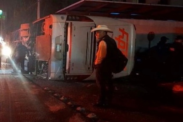 El accidente ocurrió la madrugada de este lunes cuando el conductor de la unidad 614 se quedó dormido, chocó contra el muro de contención, perdió el control del camión y se volcó al llegar a las instalaciones de la Guardia Nacional.