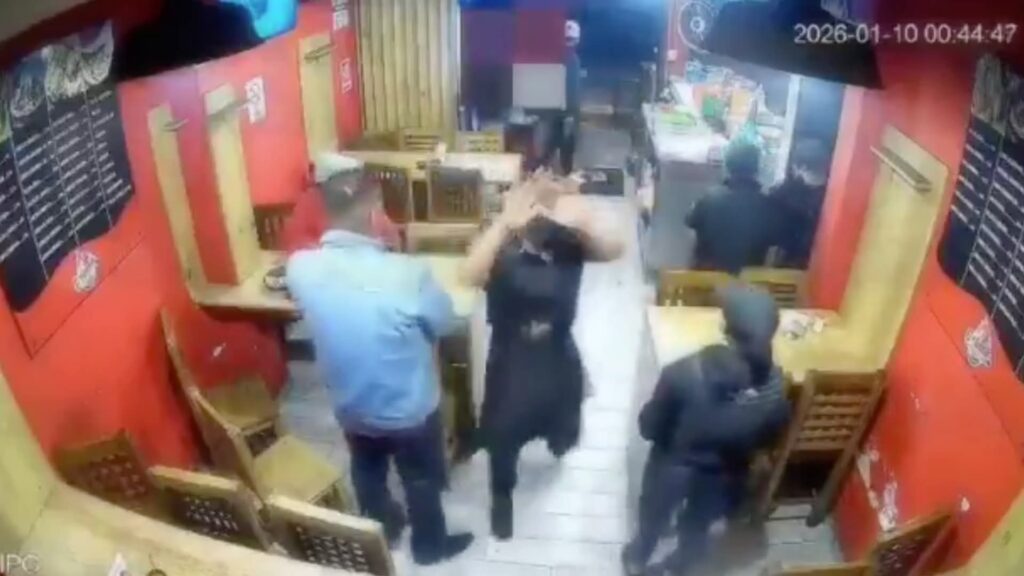Según el video de seguridad, uno de los sujetos fue a la mesa de los comensales y les quitó algunas pertenencias.
