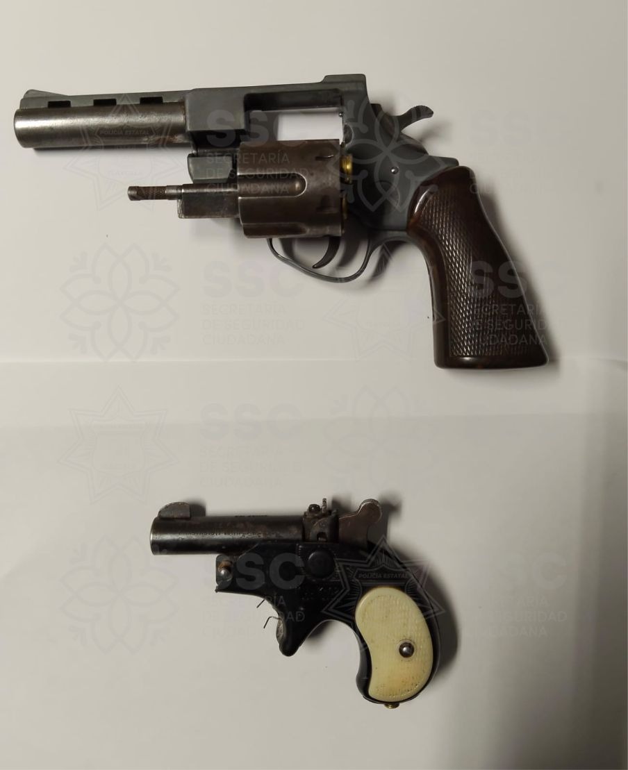 Con esta información, autoridades estatales montaron un operativo lo que permitió ubicar la unidad en la comunidad de Acuitlapilco, perteneciente al municipio de Tlaxcala. Posteriormente, al tener contacto con la unidad, los oficiales marcaron el alto para realizarles una revisión preventiva, localizando al interior del vehículo dos armas de fuego. Los detenidos no pudieron acreditar la legal posesión del arma ni la procedencia de los artículos en su poder.