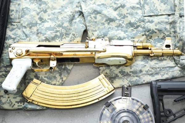 Durante el despliegue policial en el que se localizaron los vehículos, los agentes estatales hallaron además mil 363 cartuchos, 4.5 de kilos de presunta cocaína, uniformes y equipo táctico. En este aseguramiento destaca un rifle de asalto Ak 47 conocido también como “cuerno de chivo” bañado en oro.