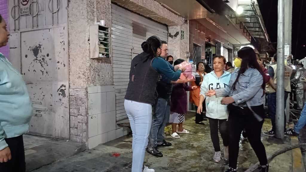 Al lugar también llegó personal de la tienda y vecinos, quienes realizaron cadena humana para resguardar algunos de los artículos y evitar su pérdida.