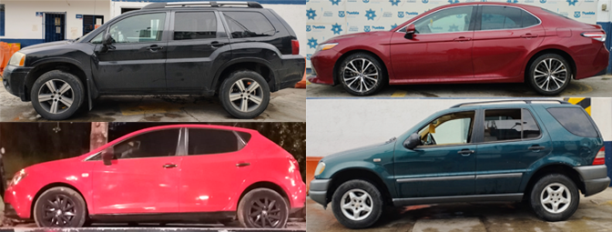 En tanto, se logró el aseguramiento de una camioneta Mercedez Benz, color verde, un vehículo Toyota, tipo Camry, color rojo; una camioneta Mitsubishi, color negro y un automóvil Seat, tipo Ibiza, color rojo.