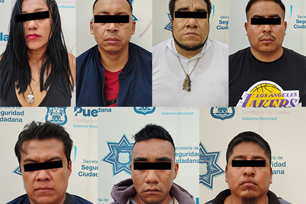Los detenidos son Jesús “N.”, de 39 años de edad; Carlos “N.”, de 36 años de edad; Jazmín “N.”, de 35 años de edad; Juan “N.” y Carlos “N.”, de 32 años de edad; Alberto “N.”, de 30 años de edad y David “N.”, de 27 años de edad.