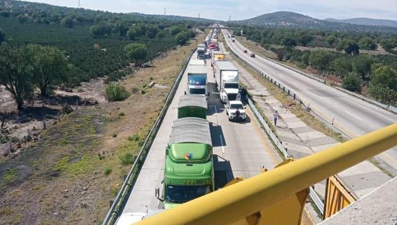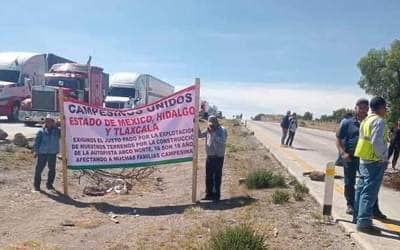 Para exigir al Gobierno Federal el pago de sus tierras que les adeudan desde hace 18 años, campesinos de Tlaxcala e Hidalgo mantienen bloqueado el Arco Norte desde el kilómetro 148, en ambos sentidos.