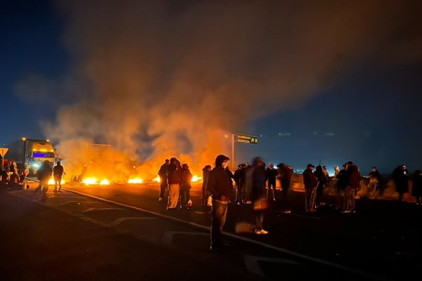 Los manifestantes tomaron la vialidad para exigir la liberación de 7 personas detenidas durante el enfrentamiento con los policías en un predio donde se pretendía iniciar la construcción de la planta tratadora.