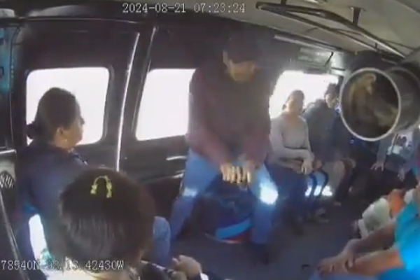 En el video quedó registrado el momento en que los asaltantes, que se hacían pasar por dos pasajeros más, sacan de su ropa armas de fuego que utilizan para amagar a sus víctimas, quienes rápidamente entregan celulares y dinero.