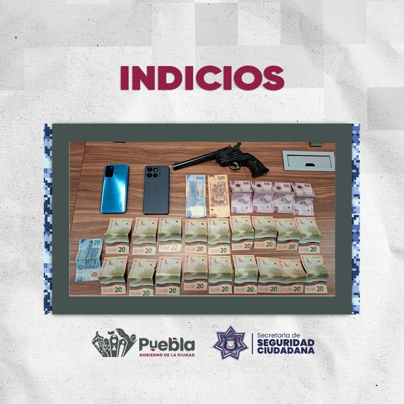 En seguimiento, los uniformados municipales dieron alcance al taxi, en calles del Centro Histórico, logrando la detención de los 5 tripulantes, así como el aseguramiento de un arma de fuego, dinero en efectivo y dos teléfonos celulares.