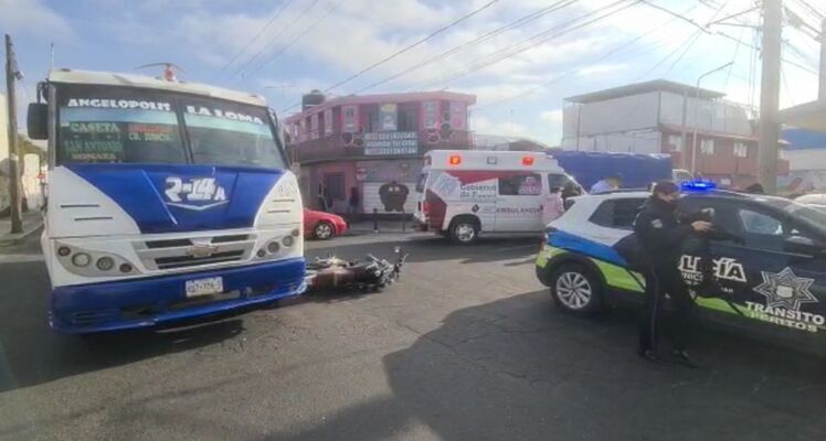 El choque entre una unidad de la Ruta 14A y una motociclistas dejó dos personas lesionada en el cruce de las calles 32 poniente y la 15 norte de la ciudad de Puebla.