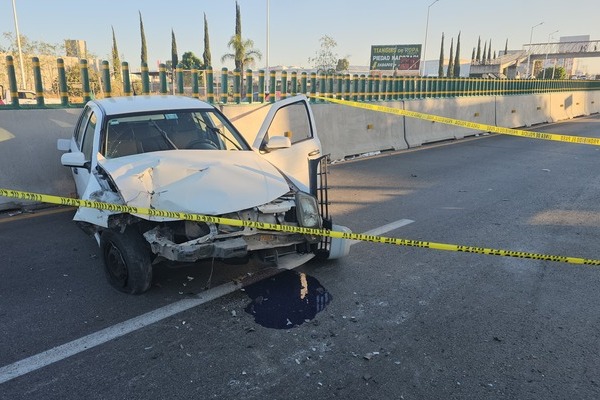 Un vehículo fue abandonado por sus ocupantes luego de impactarse contra el muro de contención en el puente ubicado sobre la Vía Corta Puebla – Santa Ana Chiautempan, en el inicio del Distribuidor Vial de la Central de Abasto de Puebla.