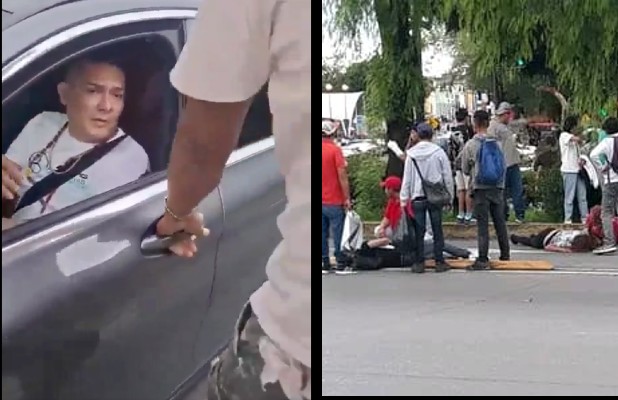 De acuerdo al video se ve como el sujeto, a bordo de un vehículo Mercedes Benz, color gris, con placas TZT208A, conduce de reversa para alejarse del percance. En las imágenes se ve daños al vehículo debido al golpe: un faro frontal roto así como el espejo lateral izquierdo.