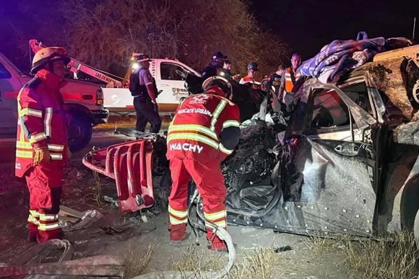 Las tres personas que perdieron la vida quedaron prensadas en el interior de un automóvil color naranja. Para el rescate de sus cuerpos, técnicos en urgencias médicas tuvieron que ocupar las “quijadas” de la vida.