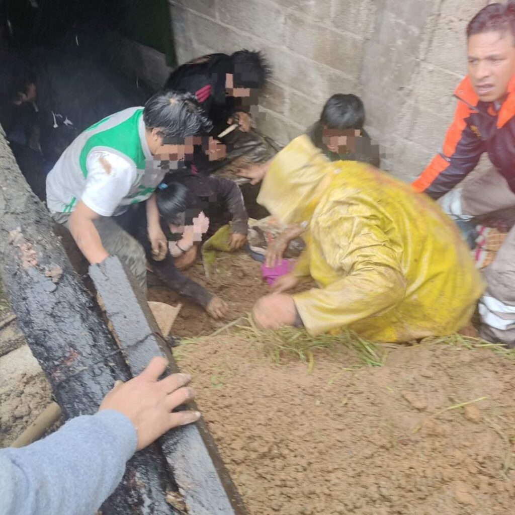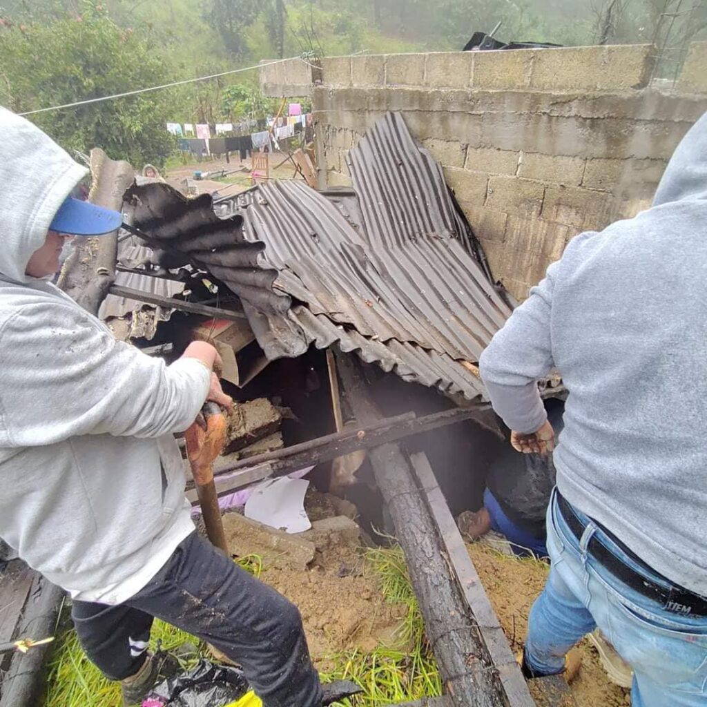 El ayuntamiento informó que, por este derrumbe, se movilizaron elementos de Protección Civil y Seguridad Pública, para rescatar a la familia que quedó atrapada en el lodo y las láminas de su humilde vivienda.