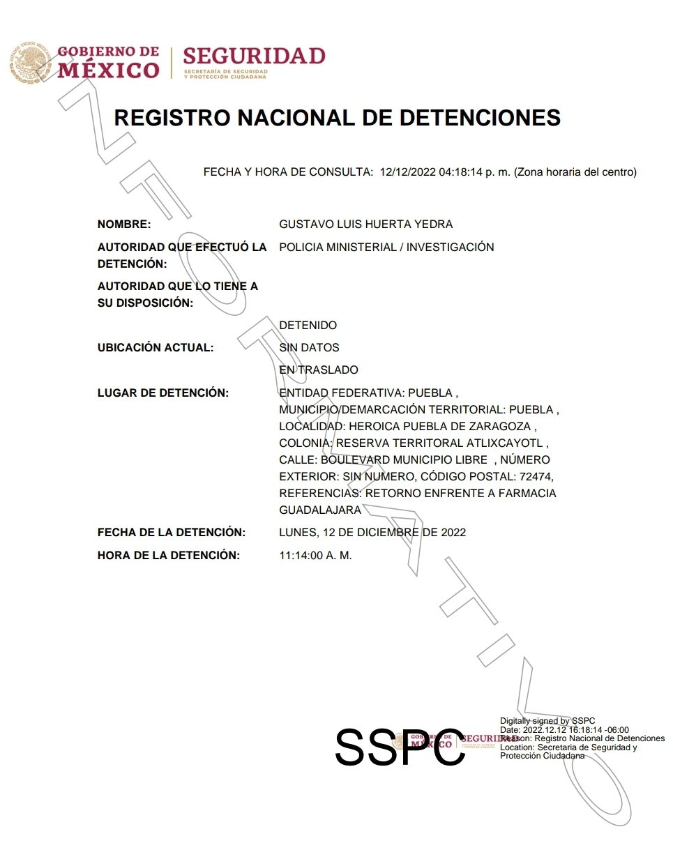 Fuentes oficiales informaron acerca de la aprehensión, la cual no había sido confirmada hasta hace unas horas que se mostró en el Registro Nacional de Detenciones.