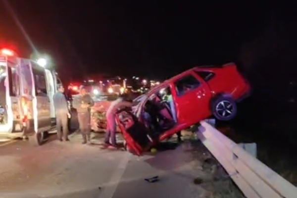 La colisión ocasionó que un automóvil Volkswagen Derby color rojo sufriera un impacto frontal y quedara por encima del sistema de contención, donde dos mujeres perdieron la vida al instante.