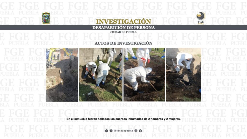 Al ampliar la información sobre el cateo a una vivienda de la colonia Miguel Hidalgo, en la ciudad Puebla, en la que se halló una fosa clandestina, Alejandro García Badiola, fiscal especializado en investigacion de delitos de desaparición forzada, comunicó que los cuatro cadáveres encontrados corresponden a dos mujeres y dos hombres.