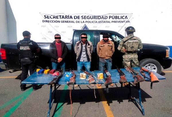 Como resultado del reforzamiento operativo en la región norte de la entidad, la Secretaría de Seguridad Pública (SSP) y la Secretaría de Marina (SEMAR) detuvieron a tres hombres en posesión de armas de fuego sin los permisos correspondientes en el municipio de Chignahuapan.