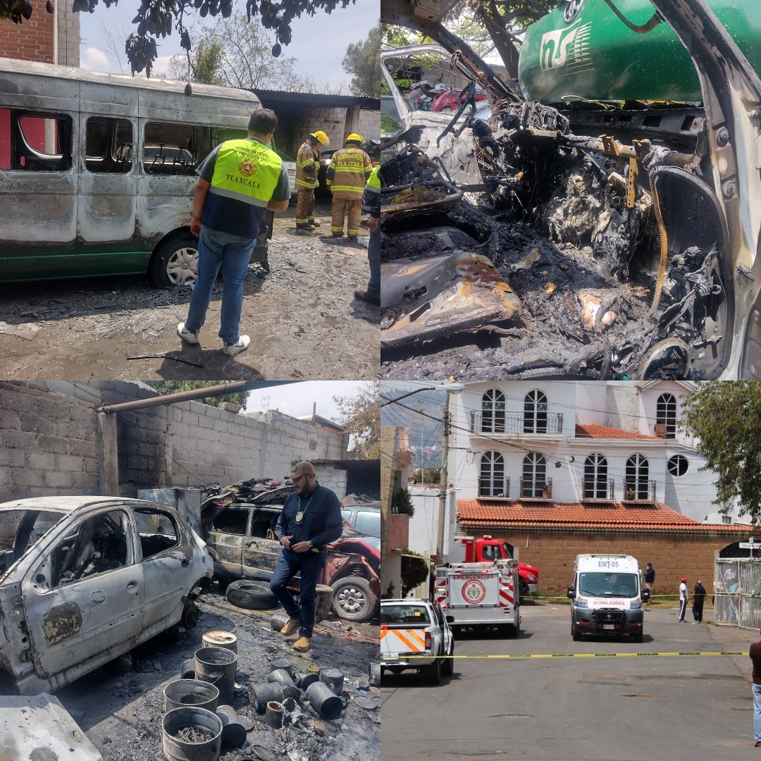 Cuatro lesionados fue el saldo de la explosión de un tanque de gas, en una unidad de transporte público al interior de un taller de hojalatería y pintura en la colonia El Sabinal, en la Ciudad de Tlaxcala.