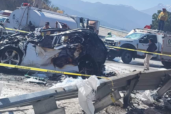 La circulación esta cerrada en ambos sentidos, y de acuerdo con las imágenes difundidas en las redes sociales, uno de los coches siniestrados quedó totalmente destruido y casi se calcina por completo.