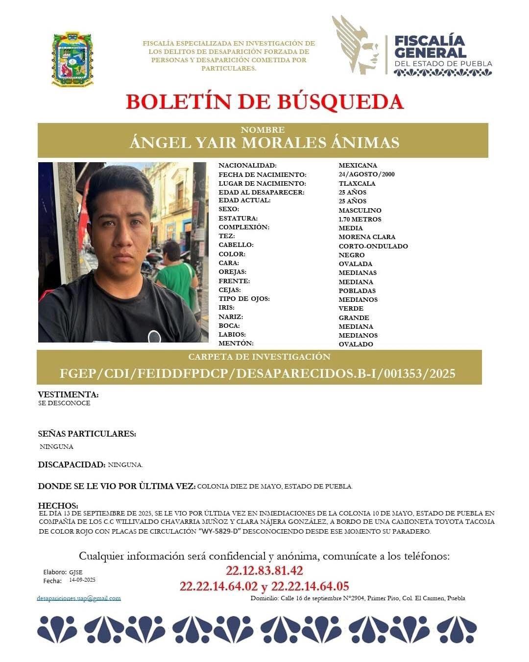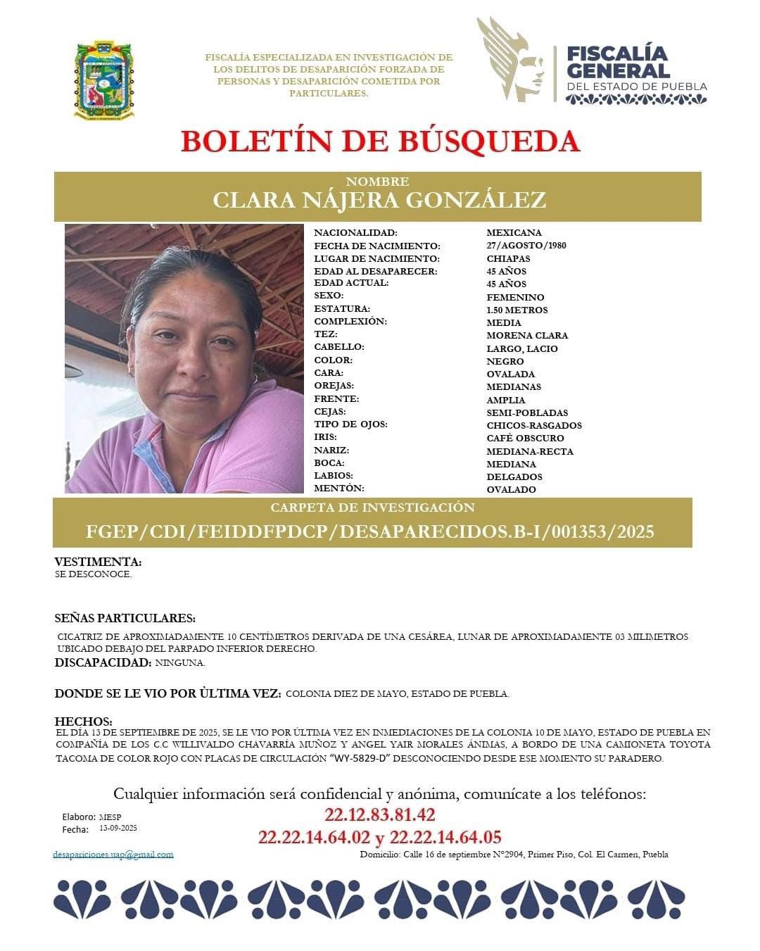 Los otros dos desaparecidos son: Clara Najera de 45 años de edad y Ángel Yair Morales de 25 años de edad.