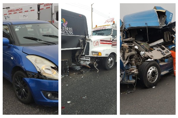 Entre las unidades involucradas en la carambola se encuentran: un auto compacto marca Suzuki Swift de color azul; un Tráiler Kenworth color blanco placas de circulación 22-AR-4A del SPF y con razón social “Transportes Trumer”, el cual era conducido por José Antonio “N”.
