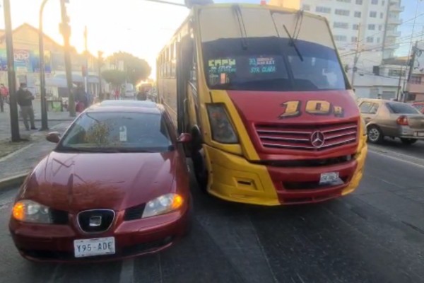 Alrededor de las 8 de la mañana, una unidad de la ruta 10 chocó contra un auto particular en la 31 poniente y 13 sur. No hubo lesionados, sólo daños materiales.