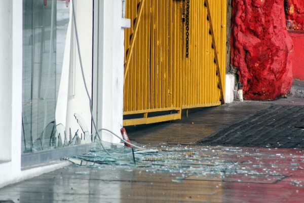 Los hampones dieron un cristalazo en la entrada principal e ingresaron.
