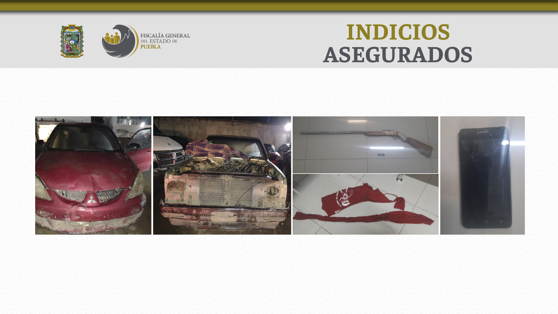 Los elementos policiales además pusieron a disposición el Agente del Ministerio Público, una escopeta, un vehículo rojo y la camioneta de las víctimas.
