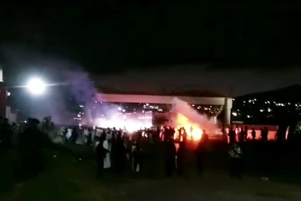 Luego de dos horas y media, un numeroso grupo de policías antimotín y de la Guardia Nacional encapsularon a los quejosos que lanzaron piedras y cohetes.