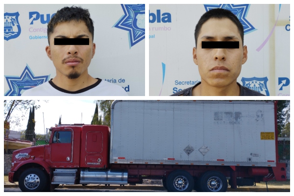 Elementos de la Policía Municipal de Puebla detuvieron a Francisco “N.” y a Óscar “N”, de 26 y 22 años de edad, respectivamente, por su participación en el delito de robo de transporte de carga.