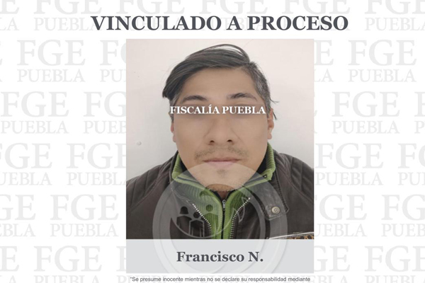 Por el delito de violación, la Fiscalía General del Estado de Puebla logró la vinculación a proceso y la medida cautelar de prisión preventiva contra Francisco N.