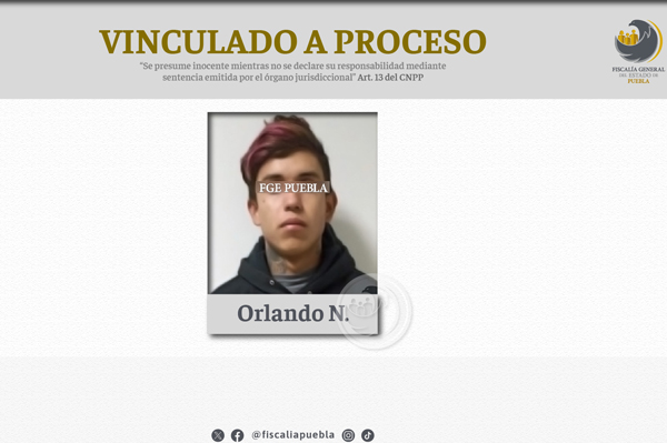 La Fiscalía General del Estado de Puebla consiguió la vinculación a proceso de Orlando N. por su posible responsabilidad en el delito de violación contra una adolescente en Aquixtla.